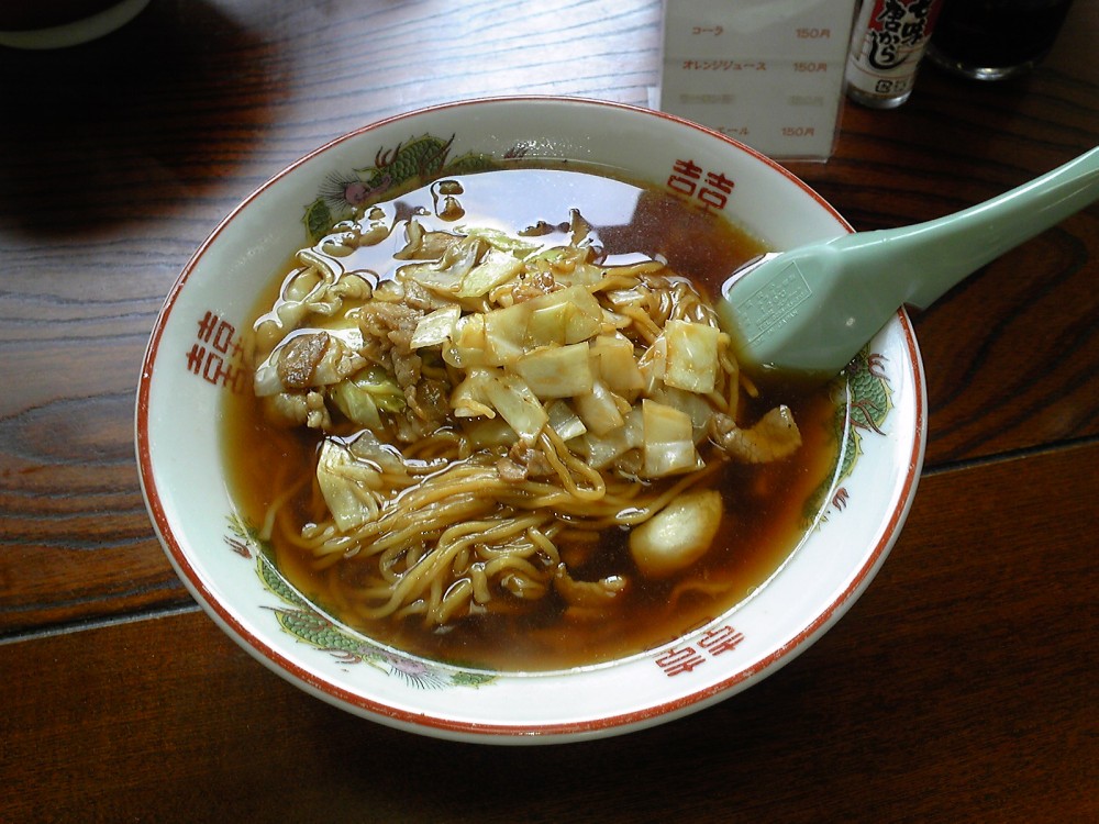 一言では言い表わせない味ですが、ソース+しょうゆベースのスープが月に一度は食べたくなる味です。毎日ではなく月イチというのがB級の証です。