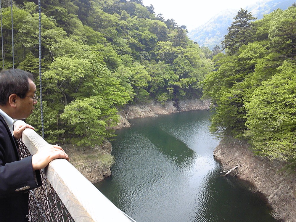 やわらかい緑が鮮やかな「回顧(みかえり)の吊橋」へ行ってまいりました。やっぱりこの季節の遊歩道は気持ちがいいです。対岸に渡って回顧の滝観瀑台ではスケッチをするお客様もおりました。